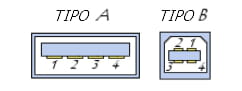 tipo A, cuja forma é retangular e que servem geralmente para periféricos pouco consumidores de banda larga (teclado, mouses, webcam, etc.) e aqueles ditos