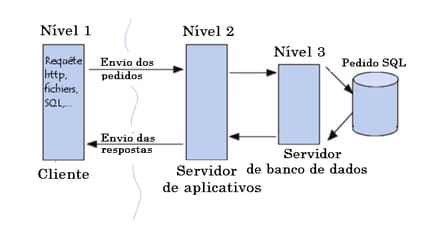 clientes (pessoas que navega na Internet, geralmente); de um ou vários servidores de aplicações (middleware): um servidor web que permite interpretar certificados CGI, PHP, ASP ou outro, e traduzi-los em pedidos SQL para interrogar um banco de dados; de um servidor de