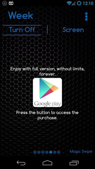 O aplicativo vai ajudá-lo a economizar a sua bateria. Além disso você poderá configurá-lo para que ele possa desligar o dispositivo usando um widget que você poderá tornar acessível, posicionando-o em sua tela inicial, por exemplo. O "Turn Off Screen Free" pode ser muito útil, caso você tenha danificado ou quebrado o botão Power do aparelho. Ao invés de pagar o conserto, instale o aplicativo.