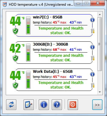HDD Temperature é um software simples para monitorar a temperatura do seu disco rígido. Você pode definir a temperatura máxima do seu disco rígido para ser informado sobre todos os riscos de superaquecimento. A versão profissional do HDD Temperature oferece a possibilidade de verificar vários discos rígidos em um computador local ou em rede: