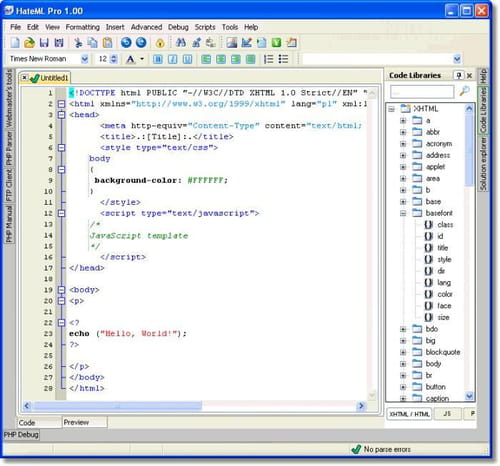 HateML Pro é um editor avançado de PHP e HTML que conta com suporte extendido para XHTML e CSS.