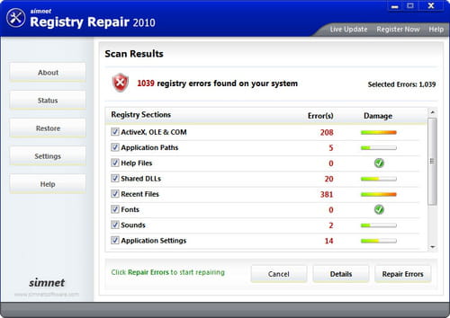 Ortografia alternativa: SimnetRegistryRepair2010.exe