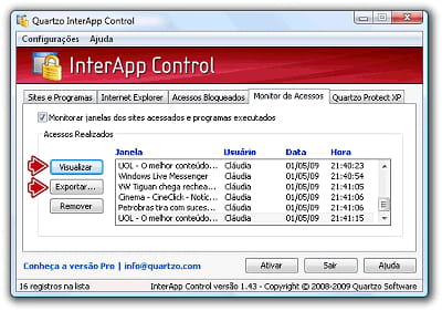 Com o InterApp Control você poderá controlar o uso do computador: Ele pode bloquear o que você programar: sites de adultos, programas, Twitter, YouTube, Facebook, jogos, mensageiros como o WhatsApp, downloads, inclusive o acesso ao Painel de Controle do computador. Além disso, você também pode monitorar seu PC para saber o que estão fazendo nele na sua ausência: os sites acessados, os programas executados e as teclas digitadas.