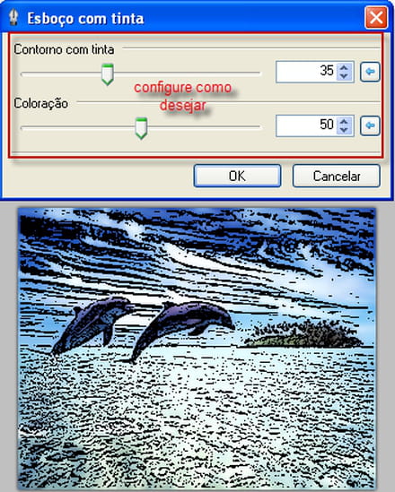 A caixa do efeito também se abrirá para você poder configurar o resultado da foto. Movimente o cursor para os lados e visualize o resultado na foto:
