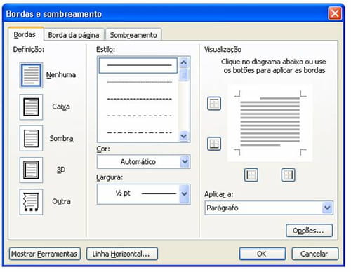 Bordas e sombreamento