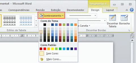 2. Clique em sombreamento na Faixa de Opções Design e na cor desejada. Saiba que estes sombreamentos só estão disponíveis em cor lisa apenas (sem gradiente ou textura).