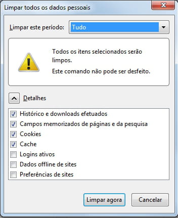 Para limpar o cache do Mozilla vá em