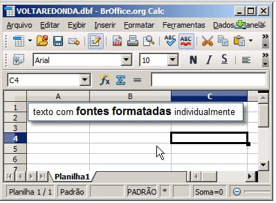 Geralmente, uma formatação abrange células inteiras, embora seja possível formatar separadamente caracteres, palavras, números, frases, etc, dentro de uma célula. Para isso, basta selecionar caracteres e aplicar o formato desejado.