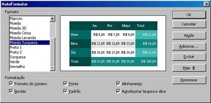 AutoFormatação (Calc). depois escolha um dos layouts disponíveis na lista exibida na tela. A visualização aparecerá na área da direita: