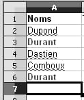 Reproduzir o layout (pequeno pincel) nas linhas seguintes. Qualquer duplicata será localizada rapidamente pelo formato definido (aqui, um texto em negrito vermelho):