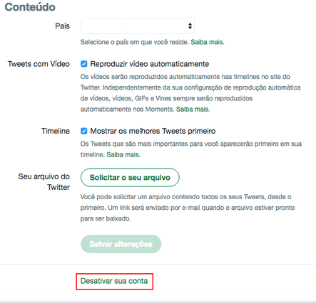 Desativar sua conta do Twitter