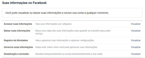 Suas informações no Facebook >
