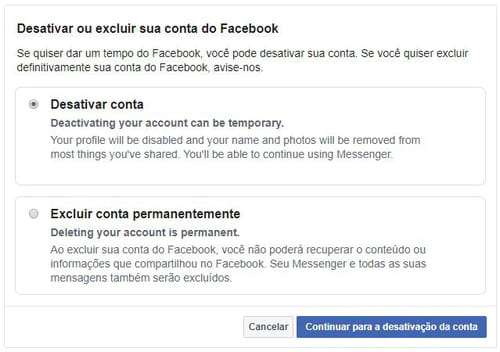 Desativar uma conta no Facebook é simples e você ainda tem a possibilidade de recuperá-la. Outro procedimento é a exclusão do perfil. Ele tem caráter permanente e a rede social dá apenas 30 dias para que você mude de ideia e faça a reativação.