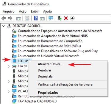 ESD-USB. Nos Windows mais antigos, logo abaixo aparecerá a imagem de um disco rígido, invisível na exibição por tipo: clique no ícone. No Windows 10 (ou a partir do Windows 7), clique com o botão direito do mouse sobre a linha ESD-USB e depois em Atualizar: