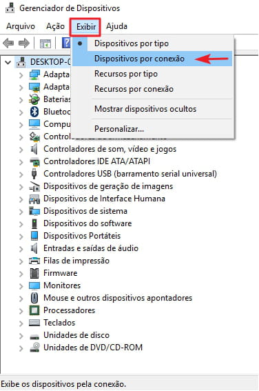 Estando na janela de gerenciamento de Dispositivos, no ferramenta