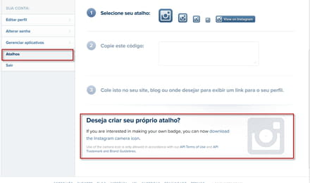 Instagram propõe diversos tipo e tamanhos de atalhos para você colocar em seu site, seu blog, sua página, para promover seu perfil. Ele propõe e facilita o uso.