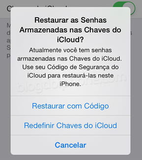 Senhas e preenchimento de senhas. Para acessar essas informações você precisará do código das Chaves do iCloud.