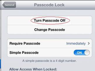 Passcode Lock (Código de bloqueio). Digite o código de acesso e toque em