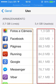 Você pode saber o que cada aplicativo instalado no seu iPhone consome. Isto permite o gerenciamento dos