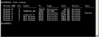 Você pode listar os discos, partições e volumes. Aconselho abrir o