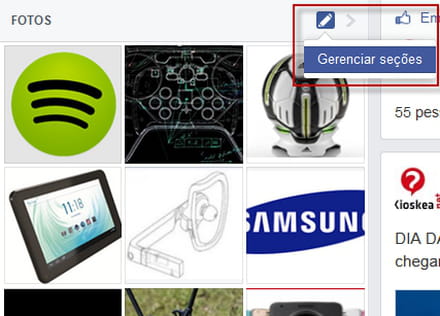 Gerenciar: passe o mouse ao lado da seta (nas fotos) para fazer aparecer o ícone