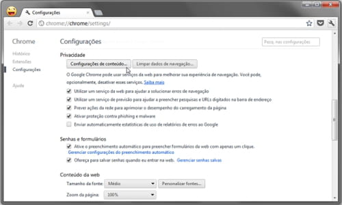 - Clique no menu Personalização e Controle do Google Chrome > Configurações.