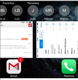 iOS 8 permite acesso rápido aos nossos contatos favoritos e recentes. Basta pressionar o botão de arranque duas vezes, além dos aplicativos que estão sendo executados, vão aparecer no topo da tela os nossos contatos favoritos e os contatos com os quais nos comunicamos recentemente, a partir do aplicativo Telefone.