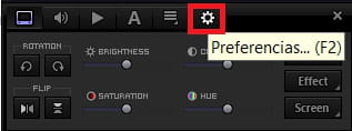 Preferências (ícone em forma de engrenagem).