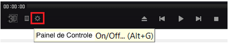 Painel de controle (ícone em forma de engrenagem), localizado na parte inferior do vídeo.