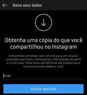 Baixar dados. Na próxima tela, digite o endereço para o qual os dados devem ser enviados e selecione