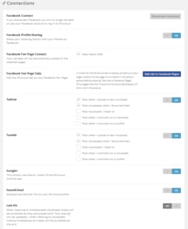 Configurações dos aplicativos conectados com o Souncloud