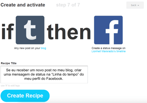 No início, pense bem no que você quer fazer se o esquema for complicado; nomeie as receitas corretamente e inicie em um ponto de partida determinado. Por exemplo, você vai postar no Facebook e vai redirecionar para o Twitter, em seguida, criar uma tarefa que vai redirecionar a mensagem para o Tumblr.