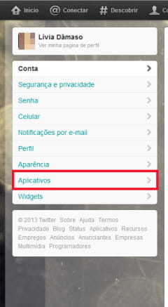 Configurações dos aplicativos conectados com o Twitter