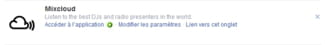 Configurações dos aplicativos conectados com o Mixcloud