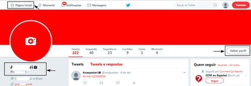 Biografia será uma referência para aqueles que visitarem a sua página. Assim, pense no que você quer comunicar. Em seguida, clique na pequena imagem de perfil, que aparece ao lado da caixa de pesquisa do Twitter, e selecione