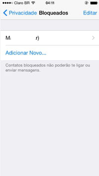 Na página que mostra os contatos bloqueados, posicione o dedo sobre o nome do contato desejado, deslize para a esquerda e toque no botão vermelho