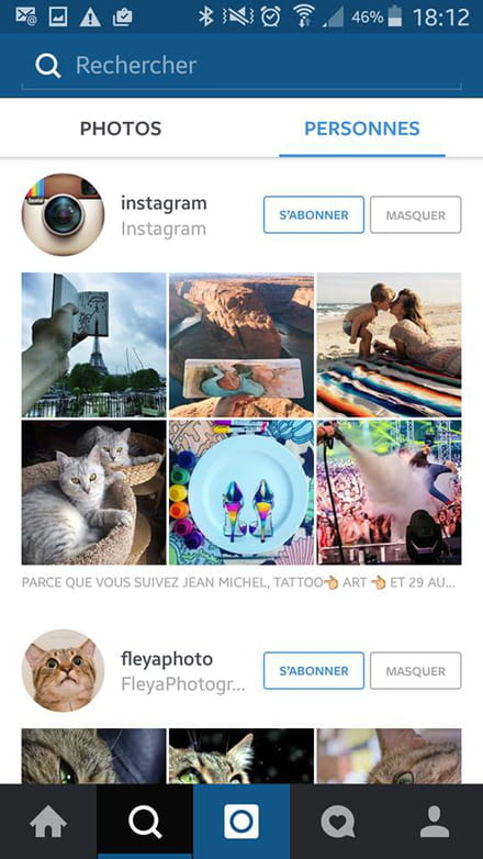 Você quer seguir um amigo ou a conta oficial de um artista? Nada mais fácil! Basta clicar na lupa no seu menu principal para que um menu de busca apareça. Nele, você poderá fazer uma busca por tipo de foto, hashtag ou por pessoas (pseudônimo). Saiba que, como no Twitter, um pseudônimo também pode começar com "@". Quando você encontrar a conta que está procurando (no caso, @instagram), basta clicar no botão