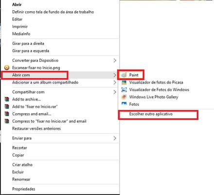 Paint, basta clicar no aplicativo que aparece abaixo do botão