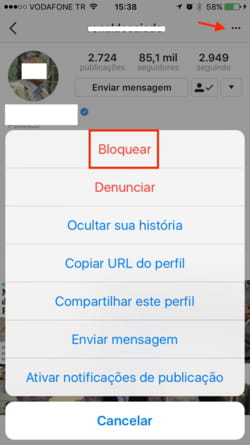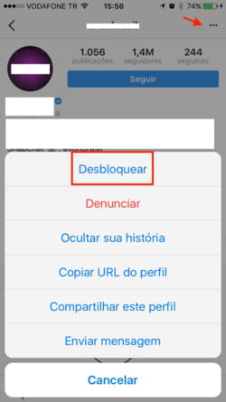 Escolha aquela pessoa que você quer desbloquear e toque novamente nos três pontinhos, situados na parte superior da página e, quando a opção aparecer, pressione em