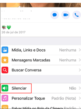 WhatsApp Messenger. Ao fazê-lo, você deverá desativar temporariamente as notificações de mensagens para a conversa selecionada.
