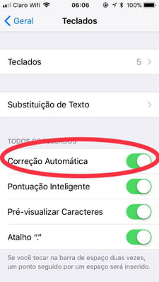 Correção automática, o recurso detecta o idioma digitado e faz a correção automática no idioma atual: