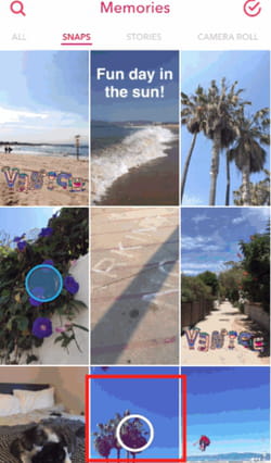 Qualquer arquivo apresentado com um círculo indica uma história salva. Basta tocar a linha para ver a mesma em tela cheia. Você também pode tocar e segurar um Snap ou uma história para editar e/ou envia-la novamente.