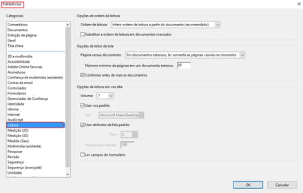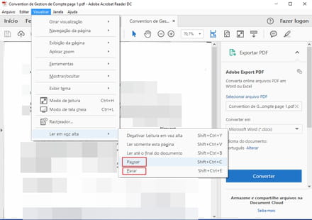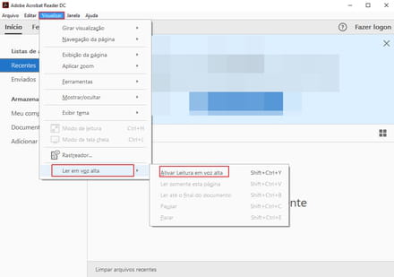Como ativar a Leitura em voz alta em um documento aberto com o Adobe Reader