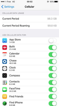 fazer um aplicativo parar de usar seus dados celulares, alterne o cursor para a posição