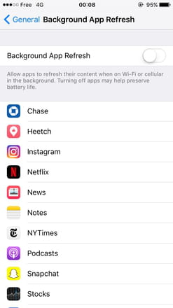 Atualizar aplicativo em segundo plano. Agora, você pode selecionar manualmente os aplicativos que você gostaria que parassem de fazer atualizações automaticamente, ou apenas para desativar o recurso completamente: