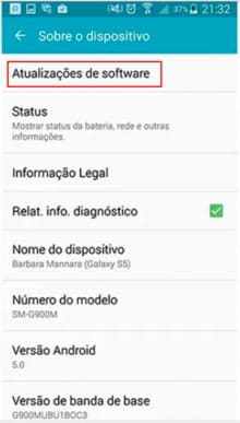 Atualização e siga as instruções na tela para realizar a mesma. Não desligue o seu celular antes que a atualização acabe.