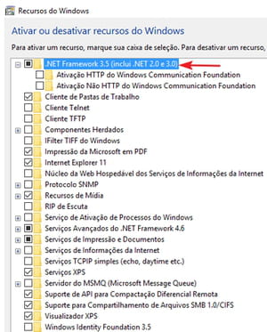 Ativar/Desativar recursos do Windows e, em seguida, percorra a lista até encontrar o item