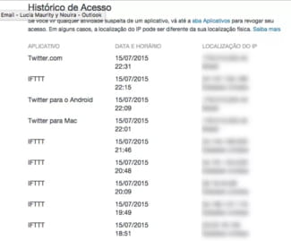 Histórico de Acesso. Você poderá acompanhar todas as suas conexões e detectar acessos suspeitos (feitos em outros países, datas que não coincidem com as suas, etc.):