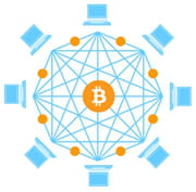 Ao invés das transações serem agrupados em um só lugar ou passar por um único intermediário, elas, sejam compra ou transferência de dinheiro, são distribuídas entre todos os membros de uma rede através do computador. Pode-se, também, falar de