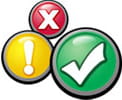 A ferramenta mostra um ícone ao lado dos resultados encontrados pelo motor de busca (Google, Yahoo! ou MSN/Live Search). A cor e a forma destes ícones indicam o resultado da análise: